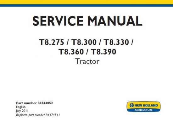 New Holland T8.275 / T8.300 / T8.330 / T8.360 / T8.390 Tractor Service Repair Manual (07-2011)