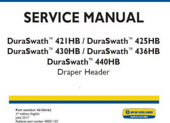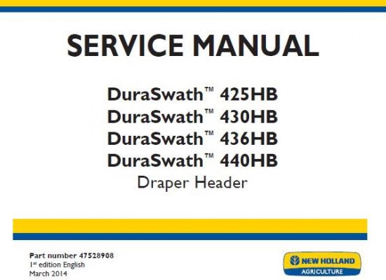New Holland Dura Swath 421HB, 425HB, 430HB, 436HB, 440HB Draper Header Service Repair Manual