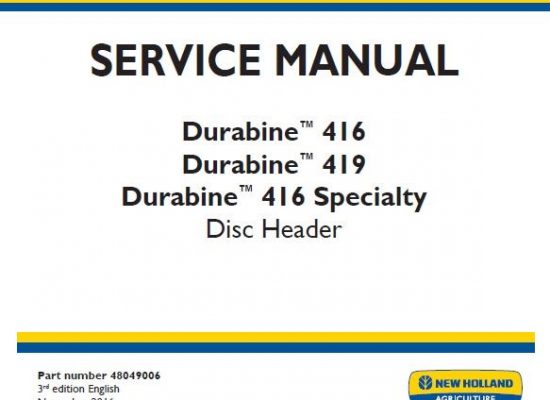 New Holland Durabine 416, 419, 416 Specialty Disc Header Service Repair Manual