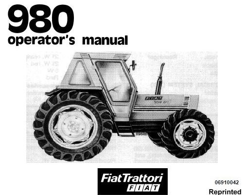 FiatTrattori FIAT 980 Tractor Operator’s Manual