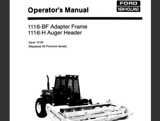 Read This New Holland 1116-BF Adapter Frame, 1116-H Auger Header Operator's Manual carefully to learn how to operate and service your machine correctly. Failure to do so could result…