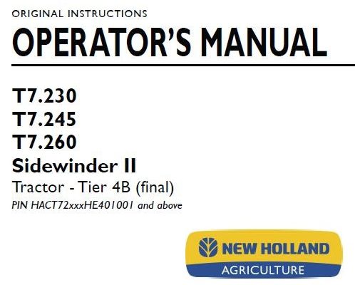 New Holland 5610S, 6610S, 7610S Tractor Operator’s Manual ( Serial Number 255857M and Above )