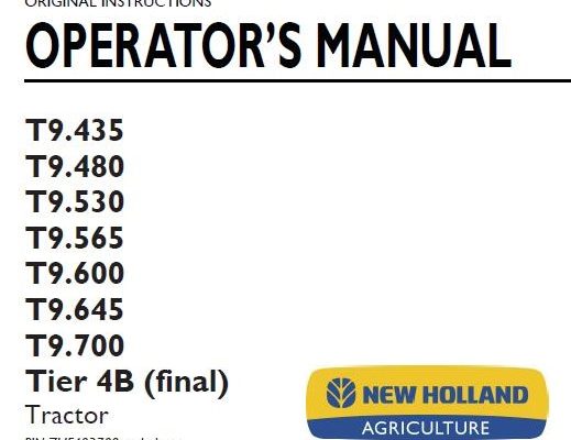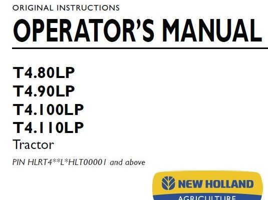 Read This New Holland TK4030V , TK4050 , TK4050M , TK4060 Tractor Operator's Manual carefully to learn how to operate and service your machine correctly. Failure to do so…