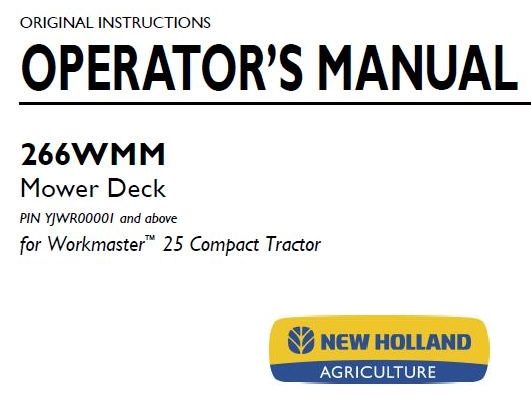 New Holland 266WMM Mower Deck ( for Workmaster™ 25 Compact Tractor ) Operator’s Manual (PIN YJWR00001 and above)