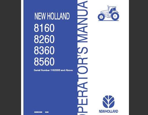 New Holland 8160, 8260, 8360, 8560 Tractor Operator’s Manual ( Serial Number 116000B and Above )