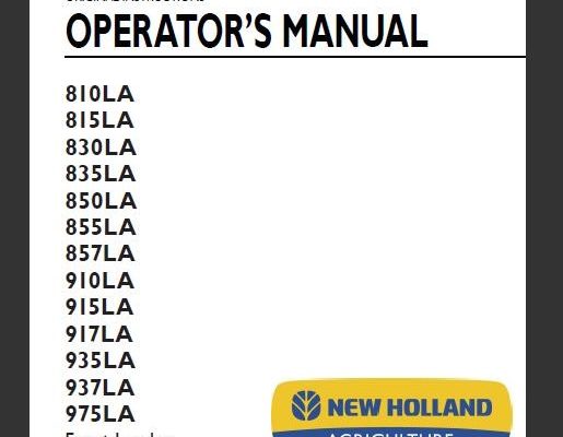 Read This New Holland 810LA, 815LA, 830LA, 835LA, 850LA, 855LA, 857LA, 910LA, 915LA, 917LA, 935LA, 937LA, 975LA Front Loader Operator's Manual carefully to learn how to operate and service…