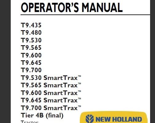 New Holland T9.435, T9.480, T9.530, T9.565, T9.600, T9.645, T9.700,T9.530 SmartTrax, T9.565 SmartTrax, T9.600 SmartTrax, T9.645 SmartTrax, T9.700 SmartTrax Tier 4B (final) Tractor Operator’s Manual (PIN JEEZ00000JF406501 and above )