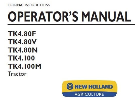 New Holland TK4.80F, TK4.80V, TK4.80N, TK4.100, TK4.100M Tractor Operator’s Manual