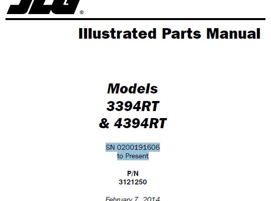 “JLG Scissor Lifts 3394RT, 4394RT Illustrated Parts Manual SN 0200191606 to Present “