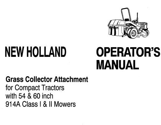Read This New Holland Grass Collector Attachment for Compact Tractorswith 54 & 60 inch 914A Class I & II Mowers Operator's Manual carefully to learn how to operate and…