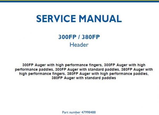 When your New Holland 300FP, 380FP Header needs maintenance or repair,This service repair manual is great to have. Becase it is the official highly detailed digital factory service repair…