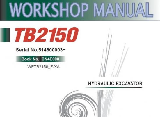 Takeuchi TB2150 Hydraulic Excavator Service Repair Manual (S/N: 514600003 and up)