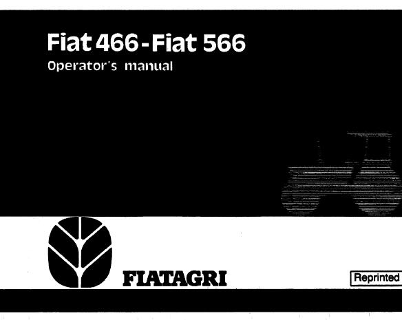 Read This FiatTrattori FIAT 466, 566 Tractor Operator’s Manual carefully to learn how to operate and service your machine correctly. Failure to do so could result in personal injury or equipment damage.