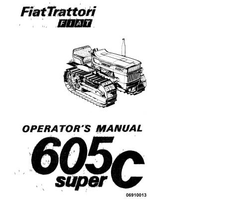 Read This FiatTrattori FIAT 605C Super Tractor Operator’s Manual carefully to learn how to operate and service your machine correctly. Failure to do so could result in personal injury or equipment damage.