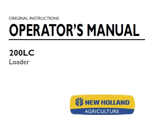 Read This New Holland 200LC Loader Operator’s Manual carefully to learn how to operate and service your machine correctly. Failure to do so could result in personal injury or equipment damage.