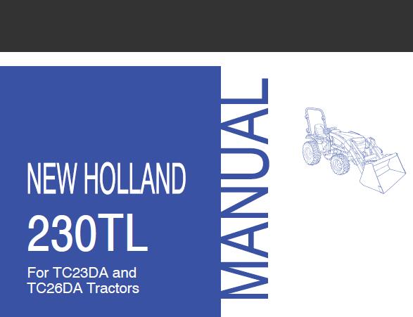 Read This New Holland 230TL Loader For TC23D and TC26DA Tractors Operator’s Manual carefully to learn how to operate and service your machine correctly. Failure to do so could result in personal injury or equipment damage.