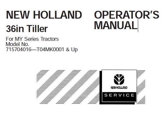 Read This New Holland 36in Tiller Operator’s Manual carefully to learn how to operate and service your machine correctly. Failure to do so could result in personal injury or equipment damage.