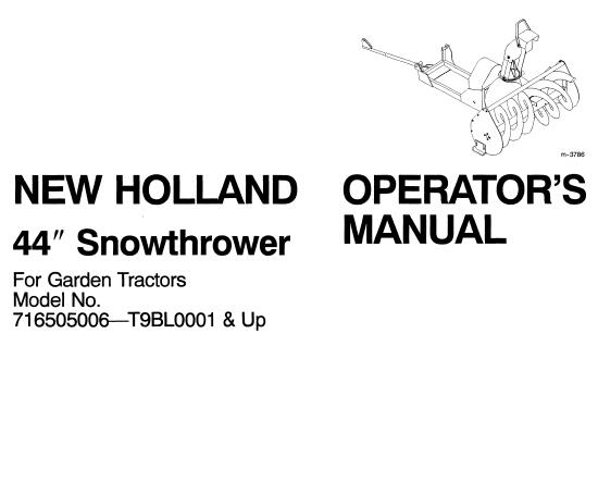 Read This New Holland 44 Snowthrower For Garden Tractors Operator’s Manual carefully to learn how to operate and service your machine correctly. Failure to do so could result in personal injury or equipment damage.