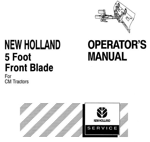 Read This New Holland 5 Foot Front Blade for CM Tractors Operator’s Manual carefully to learn how to operate and service your machine correctly. Failure to do so could result in personal injury or equipment damage.