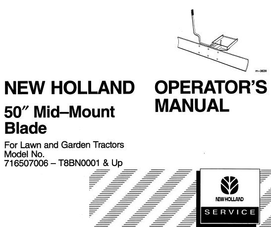 Read This New Holland 50″ Mid-Mount Blade For Lawn and Garden Tractors Operator’s Manual carefully to learn how to operate and service your machine correctly. Failure to do so could result in personal injury or equipment damage.