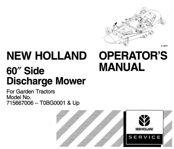 Read This New Holland 60 Side Discharge Mower Operator’s Manual carefully to learn how to operate and service your machine correctly. Failure to do so could result in personal injury or equipment damage.