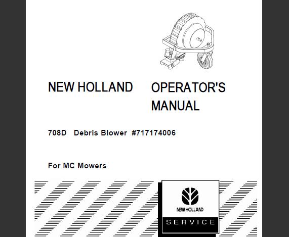 Read This New Holland 708D Debris Blower Operator’s Manual carefully to learn how to operate and service your machine correctly. Failure to do so could result in personal injury or equipment damage.