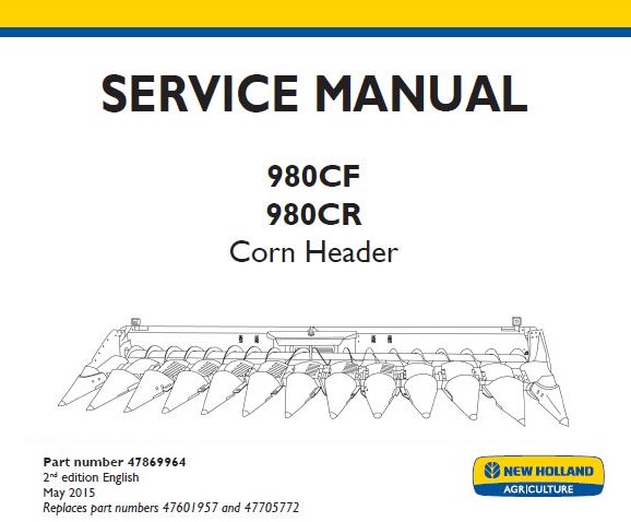 When your New Holland 980CF, 980CR Corn Header needs maintenance or repair,This service repair manual is great to have.