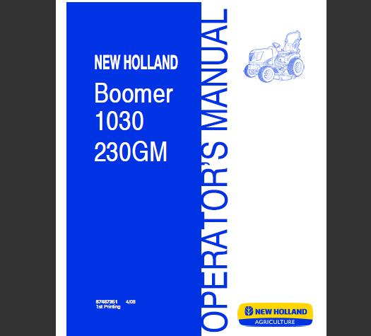 Read This New Holland Boomer 1030 230GM Tractor Operator’s Manual carefully to learn how to operate and service your machine correctly. Failure to do so could result in personal injury or equipment damage.