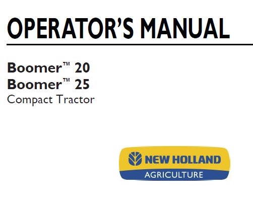 Read This New Holland Boomer™ 20, Boomer™ 25 Compact Tractor Operator’s Manual carefully to learn how to operate and service your machine correctly. Failure to do so could result in personal injury or equipment damage.