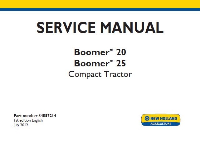 When your New Holland Boomer 20, Boomer 25 Compact Tractor needs maintenance or repair,This service repair manual is great to have.