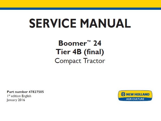 Use this New Holland Boomer 24 Tier 4B (final) Compact Tractor service repair manual, Any owner could make the right decisions about how to maintain and repair their machine. We not only provide quality manuals, but we will also Provide excellent after-sales service, Customer Satisfaction Guaranteed!