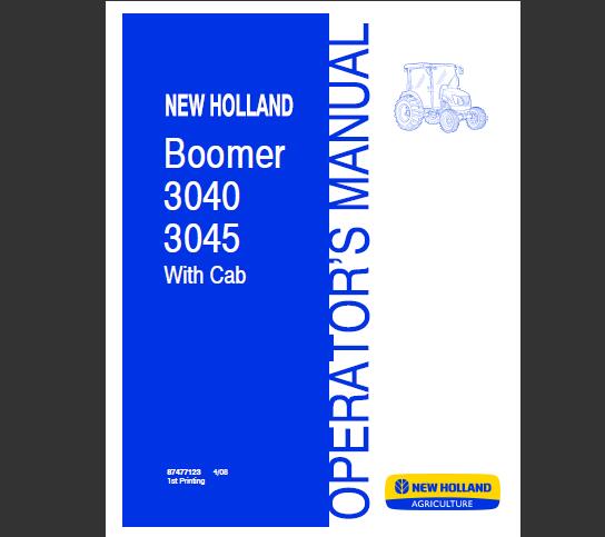 Read This New Holland Boomer 3040, 3045 With Cab Tractor Operator’s Manual carefully to learn how to operate and service your machine correctly. Failure to do so could result in personal injury or equipment damage.