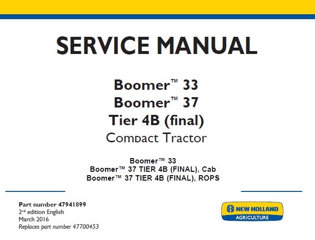 When your New Holland Boomer 33 , Boomer 37 Tier 4B (final) Compact Tractor needs maintenance or repair,This service repair manual is great to have.