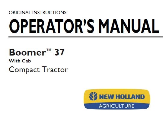 Read This New Holland Boomer 37 Compact Tractor Operator’s Manual carefully to learn how to operate and service your machine correctly. Failure to do so could result in personal injury or equipment damage.