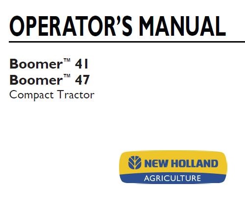 Read This New Holland Boomer™ 41, Boomer™ 47 Compact Tractor Operator’s Manual carefully to learn how to operate and service your machine correctly. Failure to do so could result in personal injury or equipment damage.