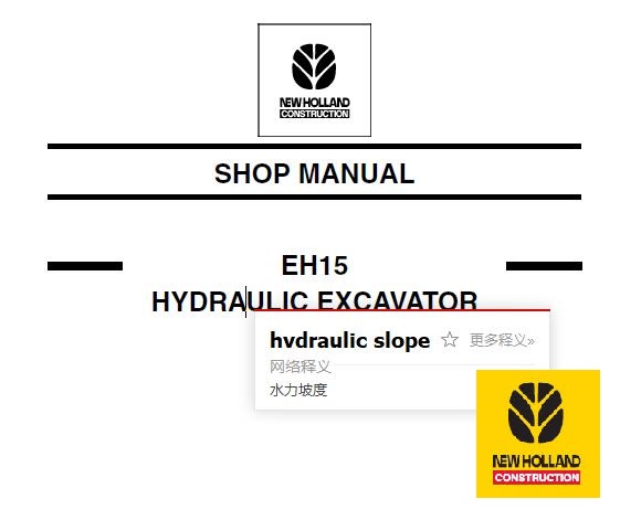 Use this New Holland EH15 Hydraulic Excavator service repair manual, Any owner could make the right decisions about how to maintain and repair their machine. We not only provide quality manuals, but we will also Provide excellent after-sales service, Customer Satisfaction Guaranteed!