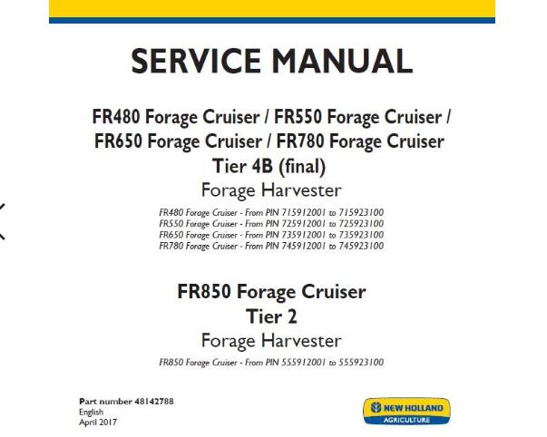 When your New Holland FR480 / FR550 / FR650 / FR780 Tier 4B (final) , FR850 Tier 2 Forage Cruiser needs maintenance or repair,This service repair manual is great to have.