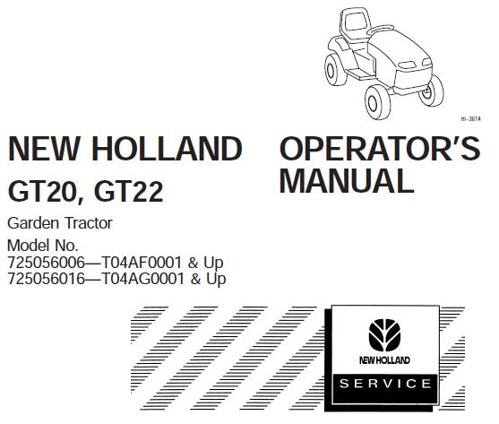 Read This New Holland GT20, GT22 Garden Tractor Operator’s Manual carefully to learn how to operate and service your machine correctly. Failure to do so could result in personal injury or equipment damage.