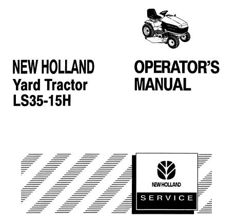 Read This New Holland LS35-15H Yard Tractor Operator’s Manual carefully to learn how to operate and service your machine correctly. Failure to do so could result in personal injury or equipment damage.