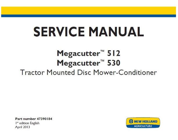 When your New Holland Megacutter 512, Megacutter 530 Tractor Mounted Disc Mower-Conditioner needs maintenance or repair,This service repair manual is great to have.