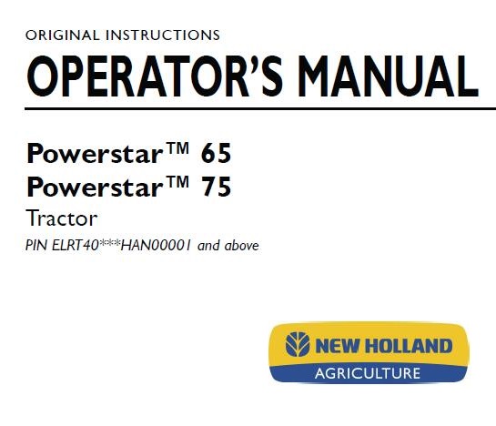 Read This New Holland Powersta 65, Powerstar 75 Tractor Operator’s Manual carefully to learn how to operate and service your machine correctly. Failure to do so could result in personal injury or equipment damage.