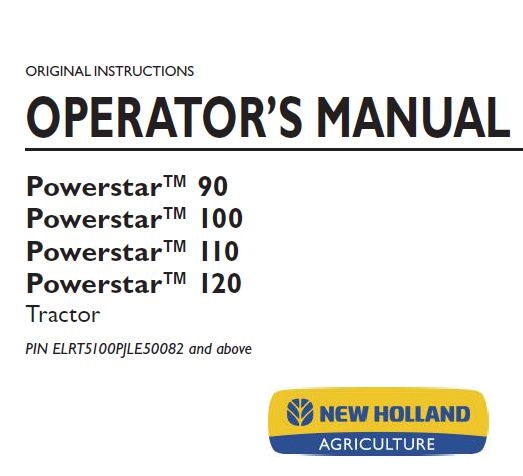 Read This New Holland Powerstar 90, Powerstar 100, Powerstar 110, Powerstar 120 Tractor Operator’s Manual carefully to learn how to operate and service your machine correctly. Failure to do so could result in personal injury or equipment damage.