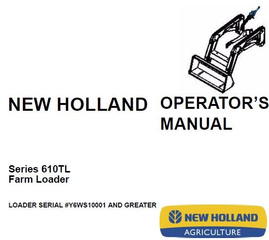 Read This New Holland Series 610TL Farm Loader Operator’s Manual carefully to learn how to operate and service your machine correctly. Failure to do so could result in personal injury or equipment damage.