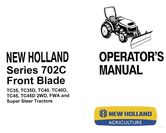 Read This New Holland Series 702C Front Blade Operator’s Manual carefully to learn how to operate and service your machine correctly. Failure to do so could result in personal injury or equipment damage.