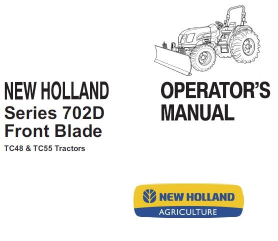 Read This New Holland Series 702D Front Blade Operator’s Manual carefully to learn how to operate and service your machine correctly. Failure to do so could result in personal injury or equipment damage.