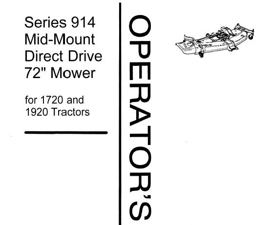Read This New Holland Series 914 Mid-Mount Direct Drive 72 Mower ( For 1720 and 1920 Tractors ) Operator’s Manual carefully to learn how to operate and service your machine correctly. Failure to do so could result in personal injury or equipment damage.