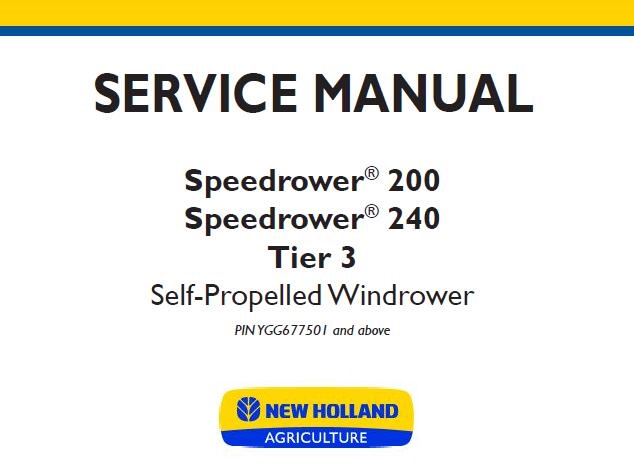 When your New Holland Speedrower 200, Speedrower 240 Tier 3 Self-Propelled Windrower needs maintenance or repair,This service repair manual is great to have.