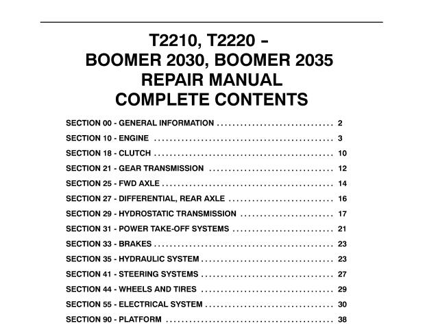When your New Holland T2210, T2220 BOOMER 2030, BOOMER 2035 Tractor needs maintenance or repair,This service repair manual is great to have.