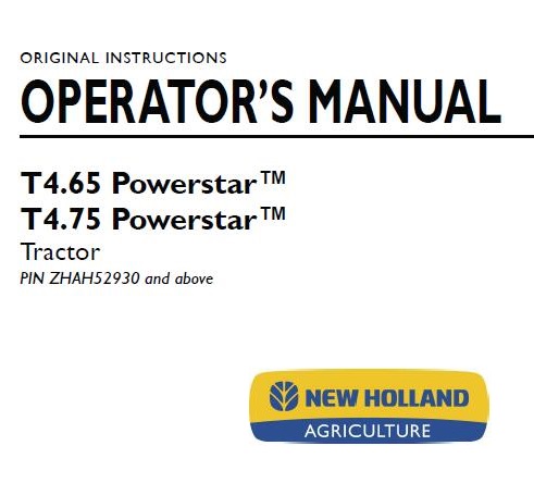 Read This New Holland T4.65 Powerstar, T4.75 Powerstar Tractor Operator’s Manual carefully to learn how to operate and service your machine correctly. Failure to do so could result in personal injury or equipment damage.