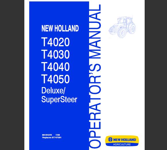 Read This New Holland T4020, T4030, T4040, T4050 Deluxe / SuperSteer Tractor Operator’s Manual carefully to learn how to operate and service your machine correctly. Failure to do so could result in personal injury or equipment damage.